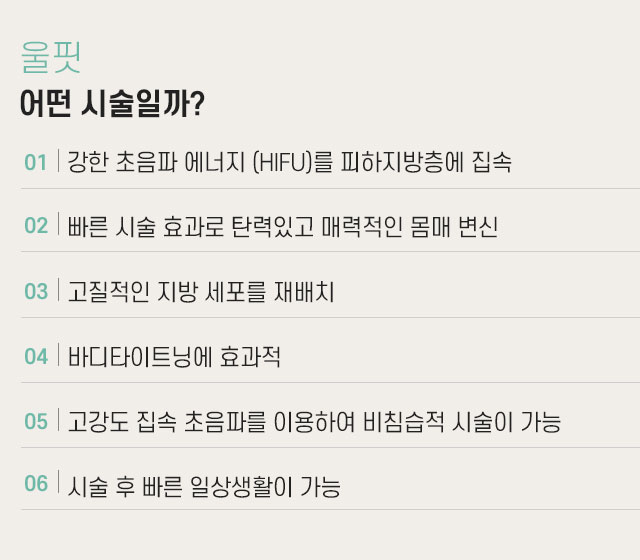 탄력있고 매력적인 몸매를 만드는 HIFU시술의 완성
