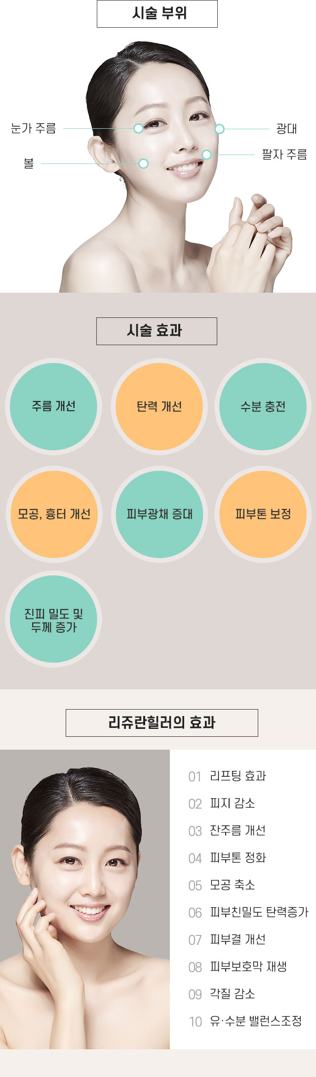 시술 부위와 효과